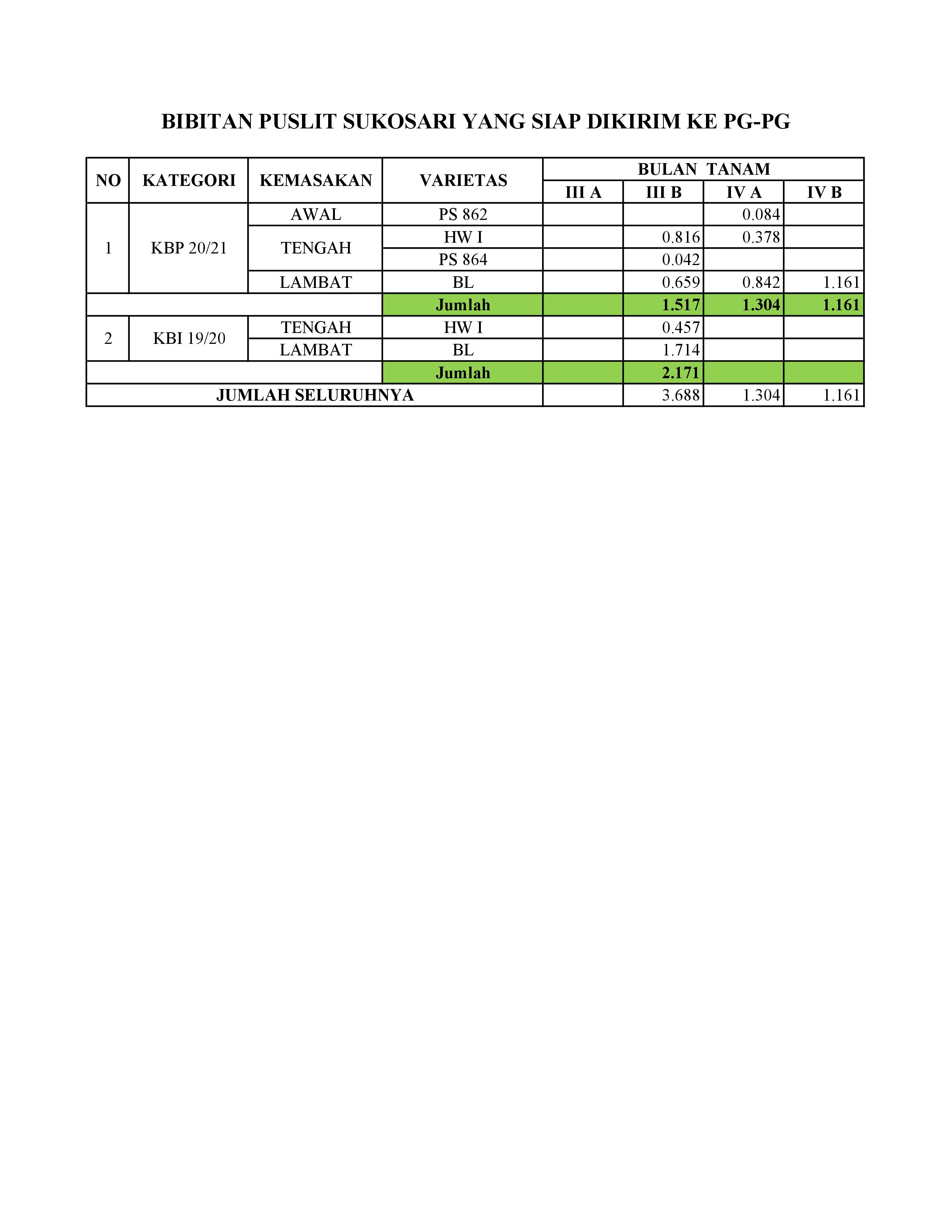 Bibit Konvensional Puslit Sukosari PTPN XI