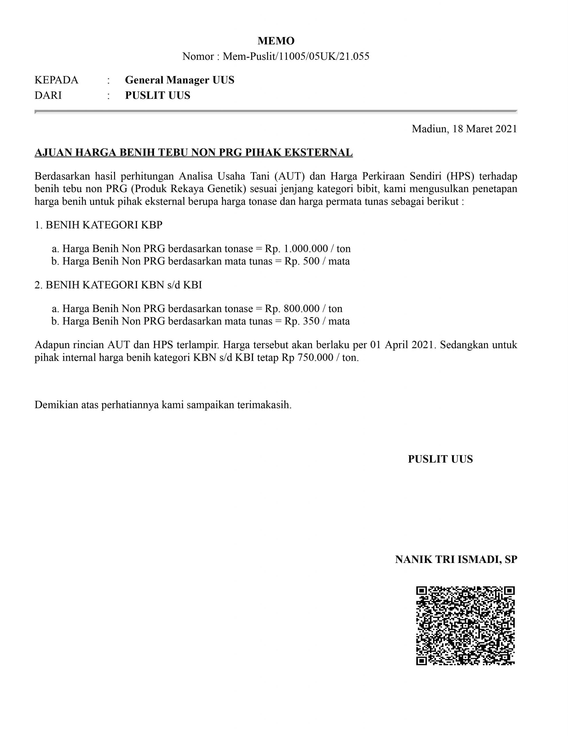 HARGA BIBIT BAGAL NON-PRG PUSLIT SUKOSARI PTPN XI TERBARU 2021