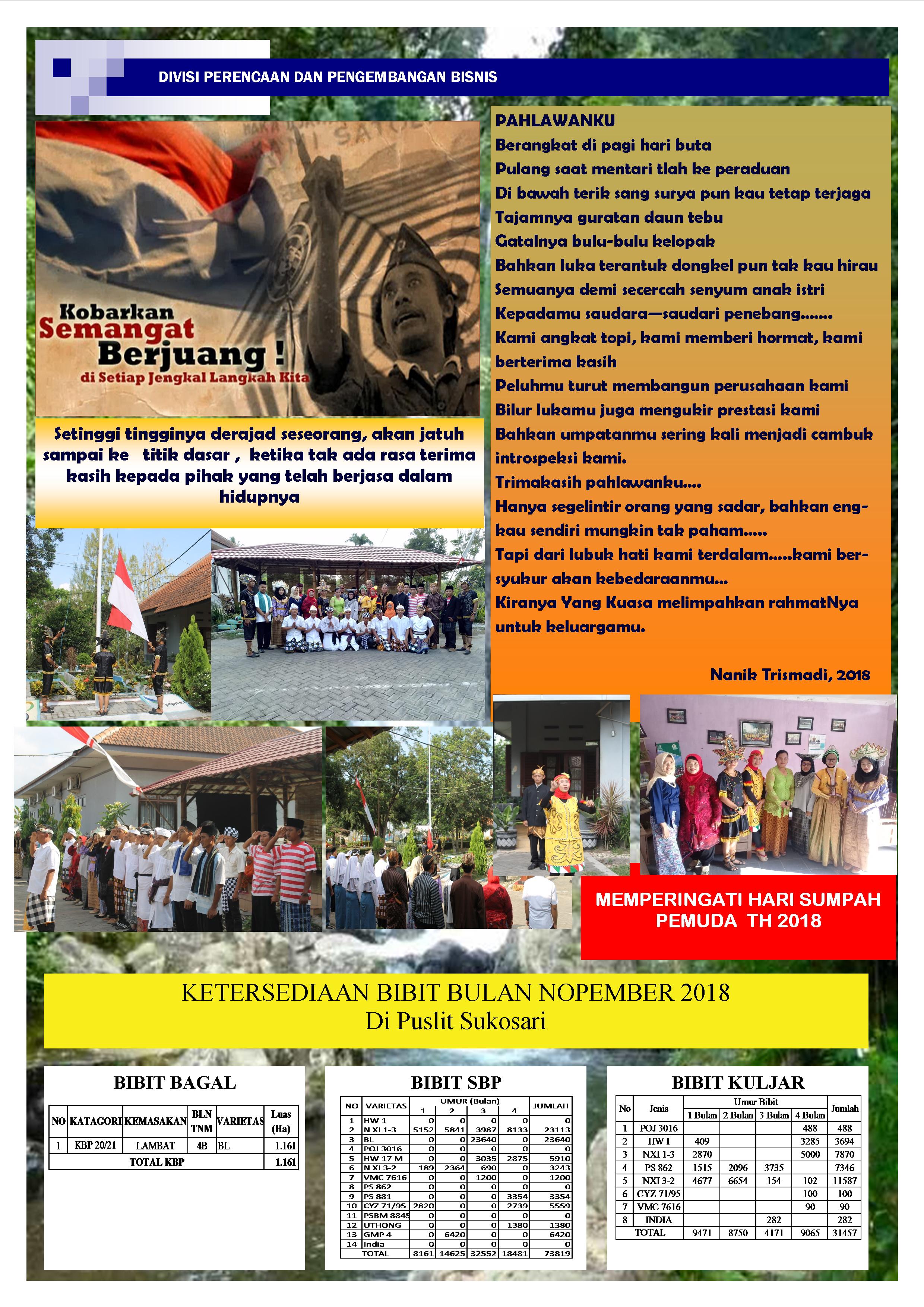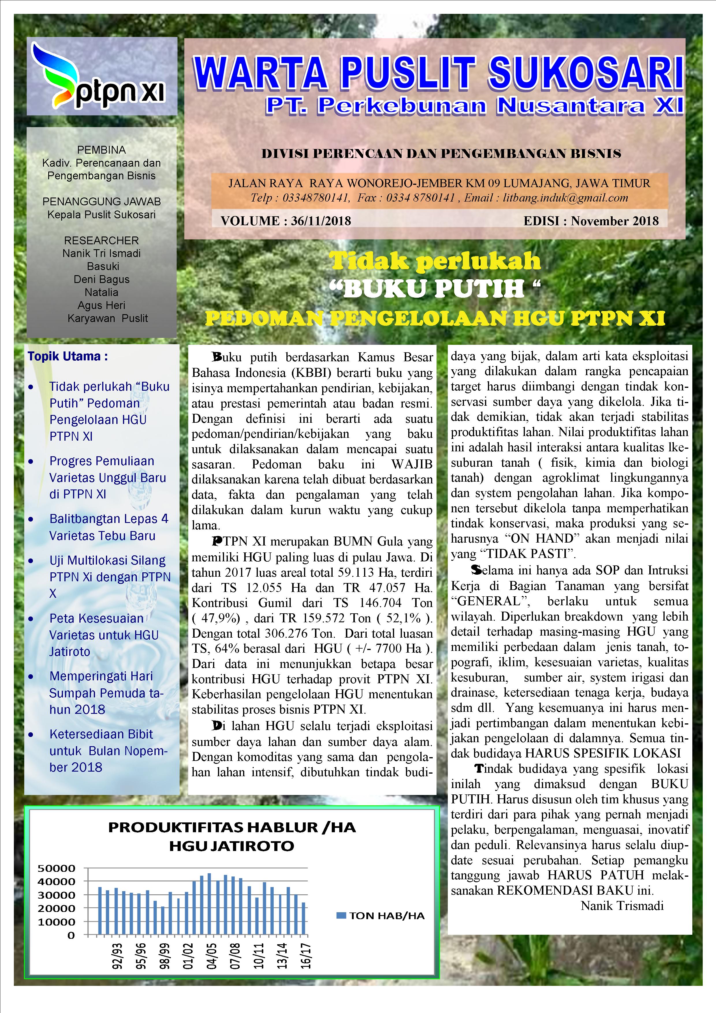 Warta Pusat Penelitian Sukosari PTPN XI Edisi November 2018